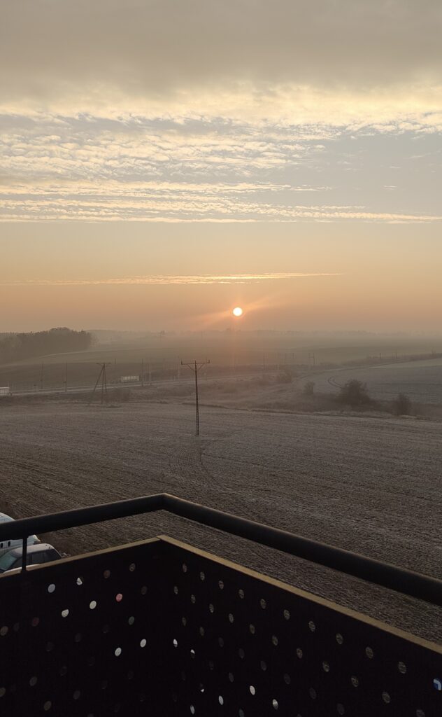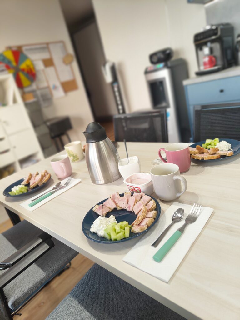 Podopieczni z Mieszkania Wspomaganego w Bogdanowie rozpoczęli niedzielny dzień podziwiając piękny wschód słońca i jedząc śniadanie przy wspólnym stole.