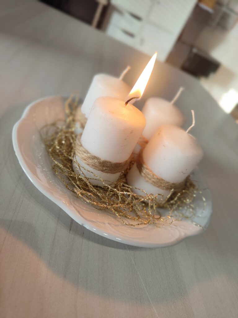 W trakcie posiłku dotarło do nas, że to już pierwsza niedziela Adwentu. Postanowiliśmy wiec przypomnieć sobie, co to oznacza i zapaliliśmy pierwszą z 4 symbolicznych świec zaczynając coraz bardziej zbliżać się do świąt.