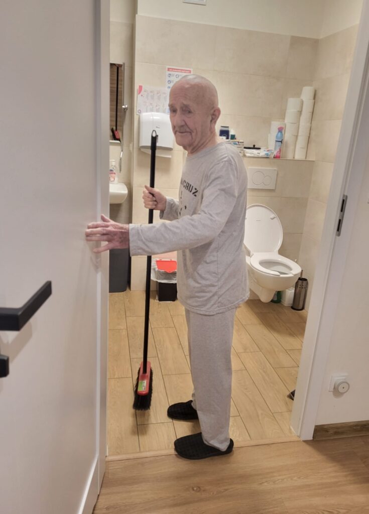 🚶Największą aktywnością wykazywał się pan Bronisław, który z przyjemnością spacerował w towarzystwie Mariany. Dodatkowo z wielką chęcią uczestniczył w codziennych czynnościach domowych, takich jak chociażby sprzątanie, pomagając tym samym naszej opiekunce Monice. 🧹