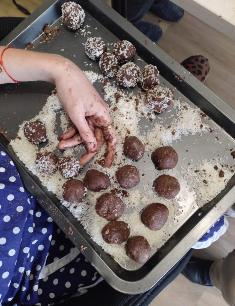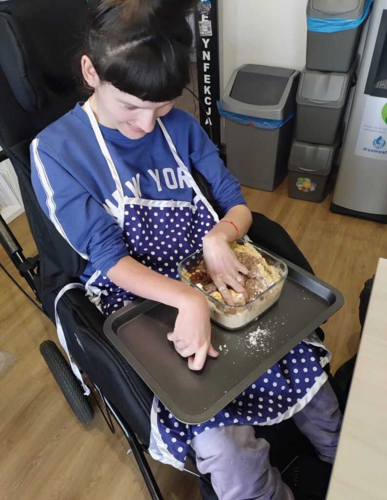 🧁 Z kolei Wiktoria to miłośniczka wypieków i odkąd przebywa w naszym mieszkaniu w kuchni unoszą się słodkie zapachy. Ostatnio z drobną pomocą naszej terapeutki Bogusi stworzyła tzw. krakowskie ziemniaczki, a dzisiaj, pod okiem opiekunki Izy, przygotowuje kolejne smakołyki. Z niecierpliwością czekamy na efekt końcowy i… degustację! ❤️