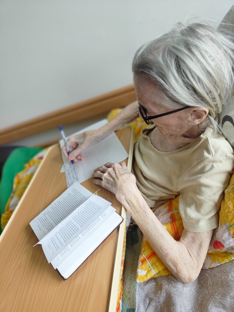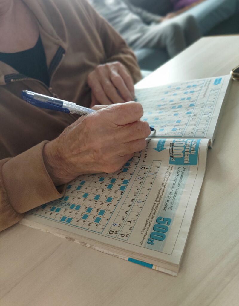 Z kolei Pani Krystyna postanowiła rozwiązywać swoje ulubione krzyżówki i szyfrowanki. Zaskoczyła nas ogromną wiedzą i tempem w jakim odgadywała coraz to trudniejsze hasła.