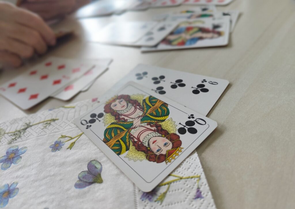 W ślad za naszymi sąsiadami z Dziennego Domu Opieki wyłożyliśmy na stół karty, które również urozmaiciły nasz wspólny czas.