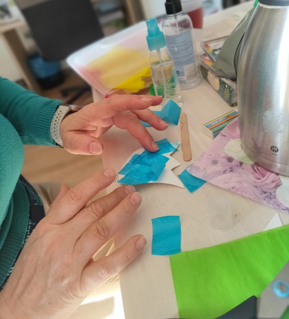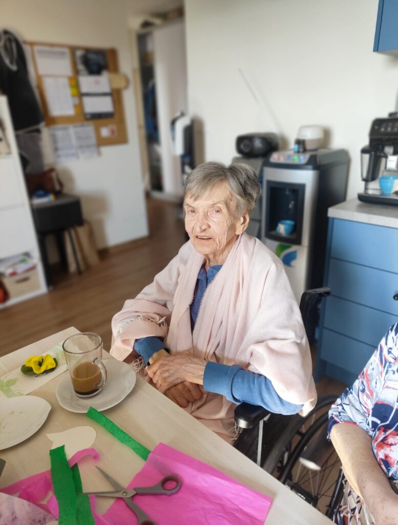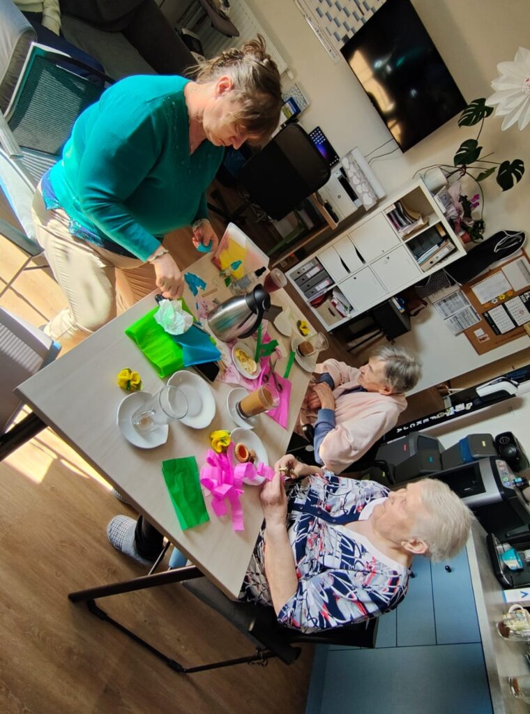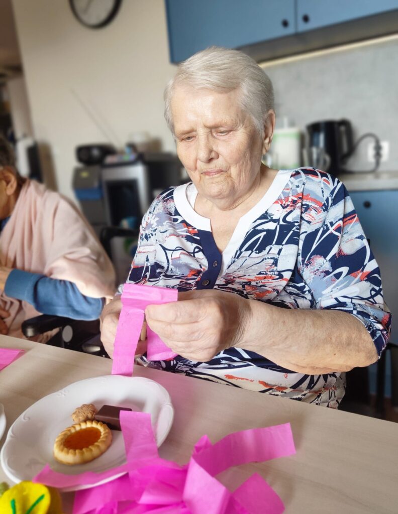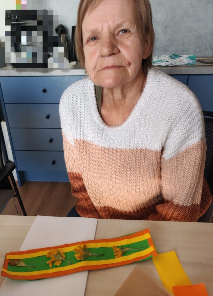 Terapeutka zajęciowa Bogusia jak zwykle zadbała o to, aby te wspólne zajęcia były dostosowane do możliwości naszych podopiecznych, a użyte materiały – bezpieczne i łatwe do chwytania.